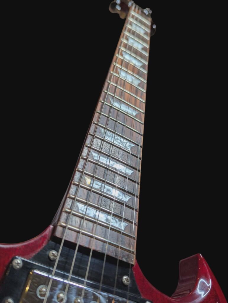 Gitara jest w pełni sprawna technicznie. Elektronika działa prawidłowo, gryf jest prosty, stroi stabilnie dzięki zamontowanym kluczom Grover, które są dużym atutem w porównaniu do standardowych kluczy montowanych w tańszych Epiphone SG.